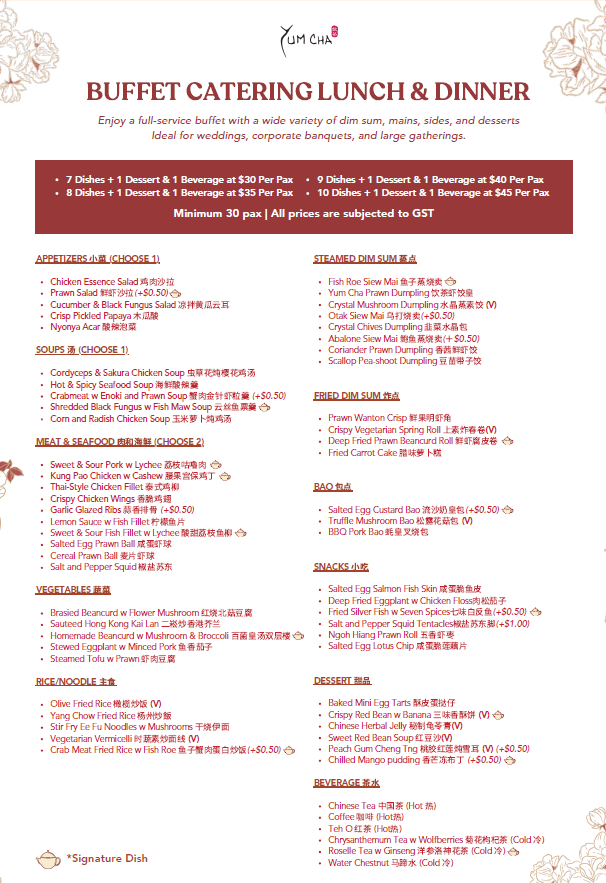 Please select your preferred catering menu based on your budget and needs, place an order with us via WhatsApp at 9632 6209, and our Customer Sales Team will contact you to confirm your order.